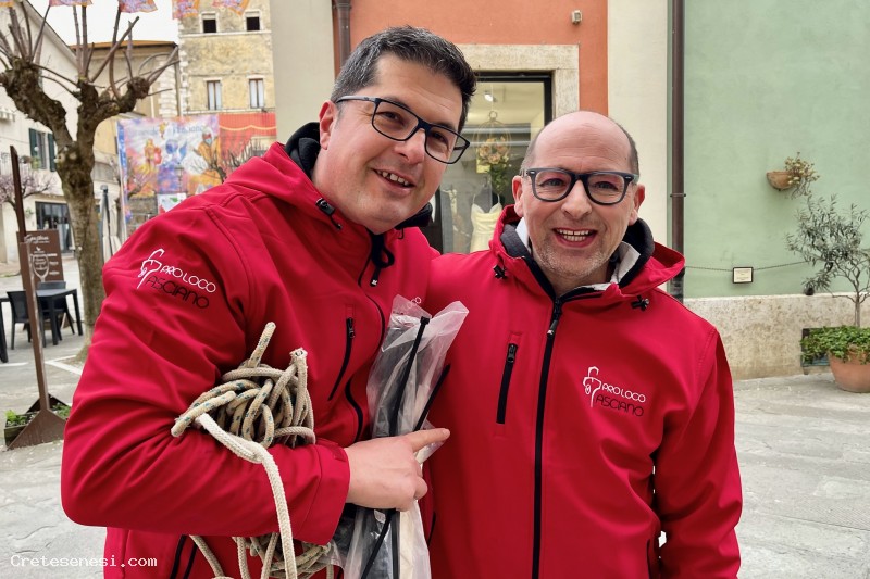 Di prima mattina, Luca Pagliantini Presidente della Proloco e Filippo Aurigi, marito di Samanta Romi, si apprestano a sistemare gli allestimenti fissi previsti per l'ultima domenica del Carnevale Ascianese.