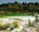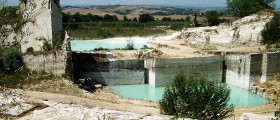 Attraversato il passaggio a livello, si trova il bivio per le cave di travertino sulla destra. Qui inizia il percorso della pietra caratterizzato da visioni sorprendenti sulle vecchie cave di travertino, spesso invase dall'acqua dopo il loro abbandono.