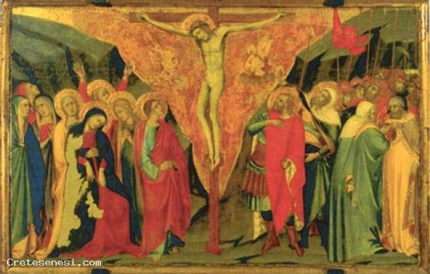 Andrea di Bartolo nasce in provincia di Siena, dell’anno non si hanno notizie certe, muore nel 1428. Figlio di Bartolo di Fredi, Pittore, (1353-1410). Sulla sua vita non si hanno tante notizie, si sa che fu il solo dei 9 figli che sopravvisse al padre con il quale iniziò l’apprendistato nella sua bottega e vi collaborò fino alla morte di questi. Un collaboratore di entrambi fu il senese Luca di Tomè, assieme realizzarono importanti opere e tra queste, alcune si trovano all’interno del Duomo di Siena: una Pala nella Cappella della Compagnia dei calzolai (1389), due tavole per la Cappella di San Giacomo (1398), e dal 1405 al 1406 realizzarono l’affresco nella Cappella di San Vittorio dove vennero rappresentate scene della vita del Santo. Nel Museo d’Arte Sacra ad Asciano è invece conservato un grandioso quadro dove vi sono abbinati vari soggetti di vari autori: la Madonna al centro di Taddeo di Bartolo (1360-1420) i quattro santi ai lati: S.Agata, S.Pietro, S.Paolo e S. Giovanni Battista di Andrea di Bartolo e i quattro evangelisti in alto attribuiti a Paolo Fei o Taddeo di Bartolo.