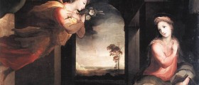 l'Annunciazione di Sarteano (237 × 222 cm), riconosciuta al Beccafumi solo nel 1932 ma di alta qualità cromatica e luministica. è l'ultima testimonianza della pittura su tavola dell'artista, fortemente influenzata dalla conoscenza michelangiolesca della Cappella Sistina, per la monumentalità classica delle figure inserite nell'ambiente in penombra a contrasto con lo stupefacente brano di paesaggio lacustre sul fondo