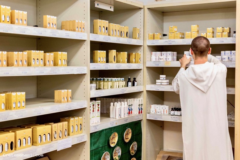 La rivendita monastica di Monte Oliveto Maggiore prosegue l’attività secolare dei monaci e delle monache benedettine nella preparazione di fito-derivati per la salute del corpo.