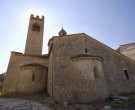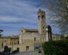 Alla destra della basilica si trova il campanile a pianta quadrata, anch'esso realizzato in blocchi di travertino squadrati, con elementi realizzati in mattoni alla sua sommità. Purtroppo i tre classici livelli di finestratura, con trifore e bifore, sono stati in parte tamponati per problemi di stabilità, confermati dalla leggera pendenza a destra, assunta dal campanile con il passare del tempo.