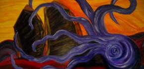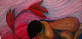 Tempera sottile su tela, dimensioni 169 x 75 cm.
