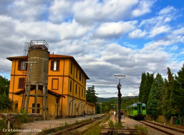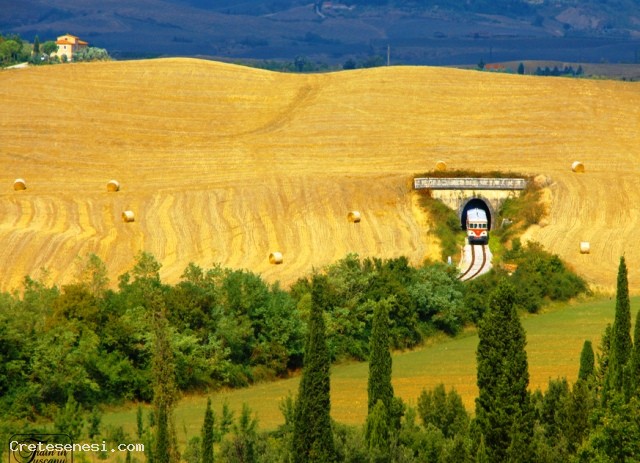 The railway winds along the valleys of the River Ombrone and its tributaries: the Arbia and Orcia, one of the most beautiful areas of Tuscany and of great natural, historical and scenic. The train runs through the valley of the fact the famous Crete Senesi and the Val d'Orcia and then lick the territory of Montalcino, famous for its Brunello wine in Siena and return along the banks of the Ombrone and Arbia. In this last section, the train touches historical places related to the route of the Via Francigena Buonconvento Lucignano d'Arbia, the Grange of Cuna and others of lesser importance.