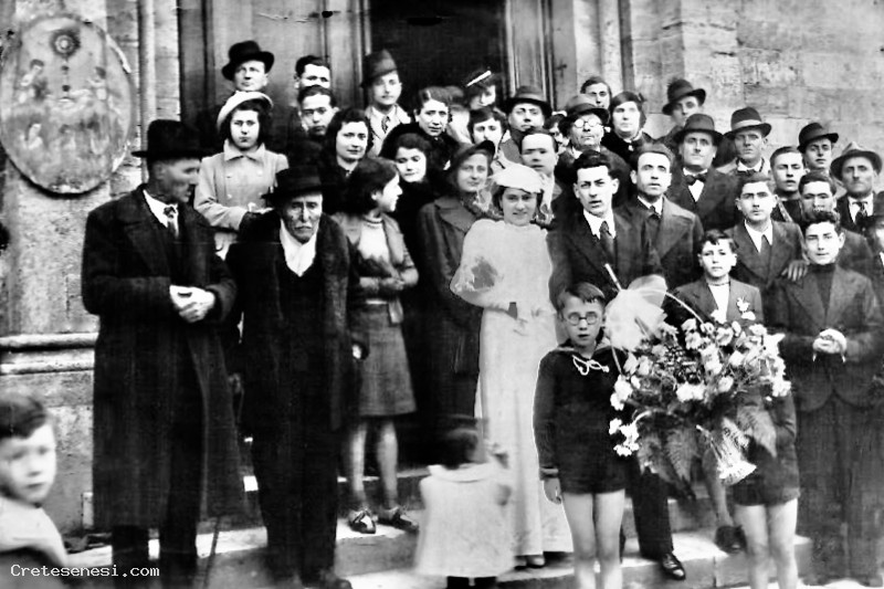 1938, 28 Febbraio - Hervé Pagliantini e Maria Turillazzi, all'uscita della Collegiata Asciano