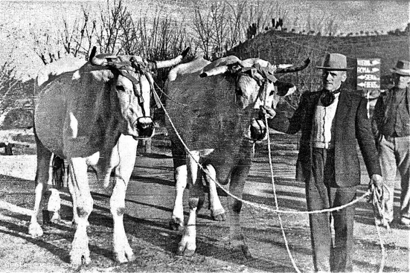 Gino aveva nella sua stalla diverse razze di buoi, fra cui le due vacche chianine della foto, di cui andava molto orgoglioso.