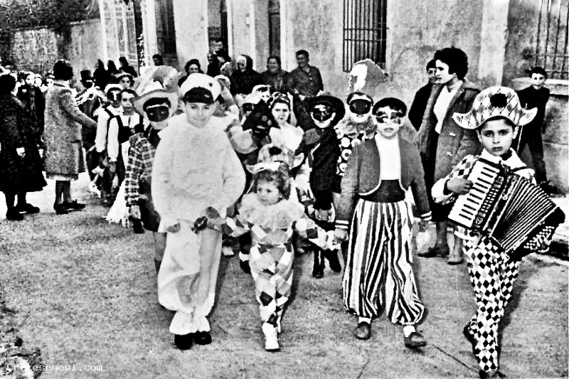 1958 - Carnevale dei bambini che escono dalle scuole vecchie Asciano