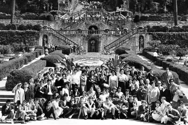 Memorabile gita sclastica dell'intera Scuola Media di Asciano a Collodi, con doverosa foto di gruppo ai piedi del giartdino con le fontane.