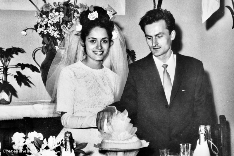 1965, Mercoledì 28 Aprile - Gli sposi al classico taglio della Torta Asciano