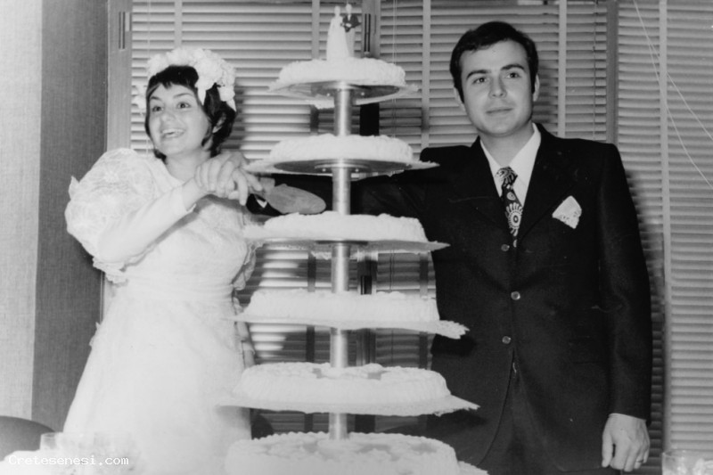 1970, Sabato 12 Settembre - Alessandro e Tatiana tagliano la torta Asciano