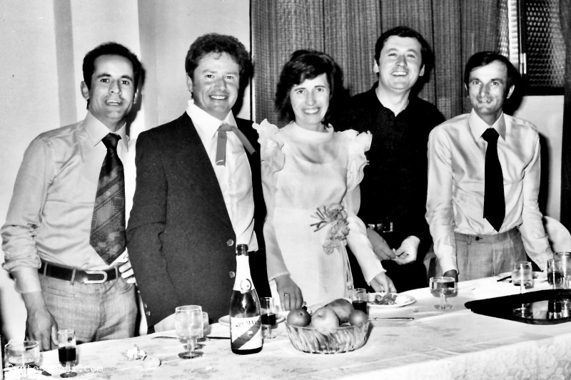 1973, Sabato 9 Giugno - Gli sposi con i testimoni e il prete Asciano