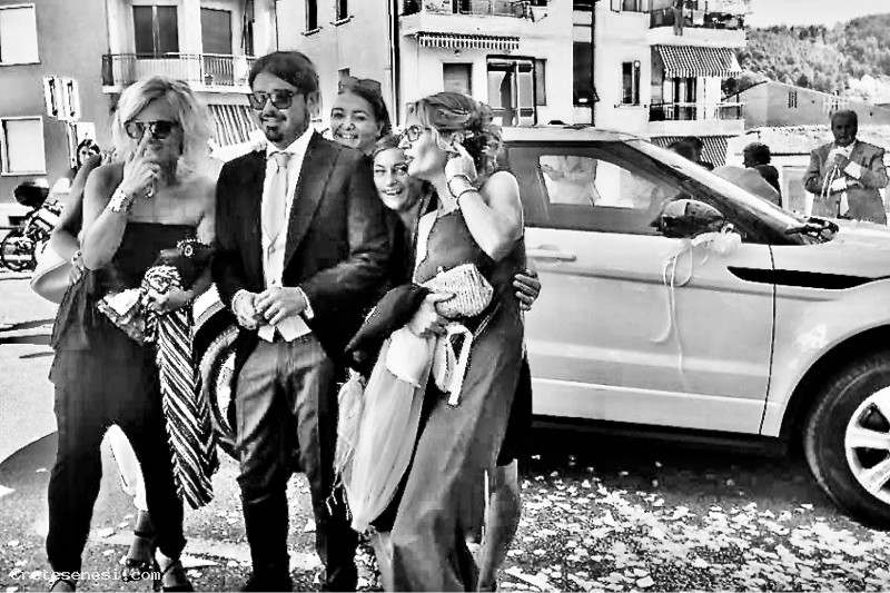 Fra le persone intorno, si riconosce la cognata dello sposo. Sara Stefanucci.