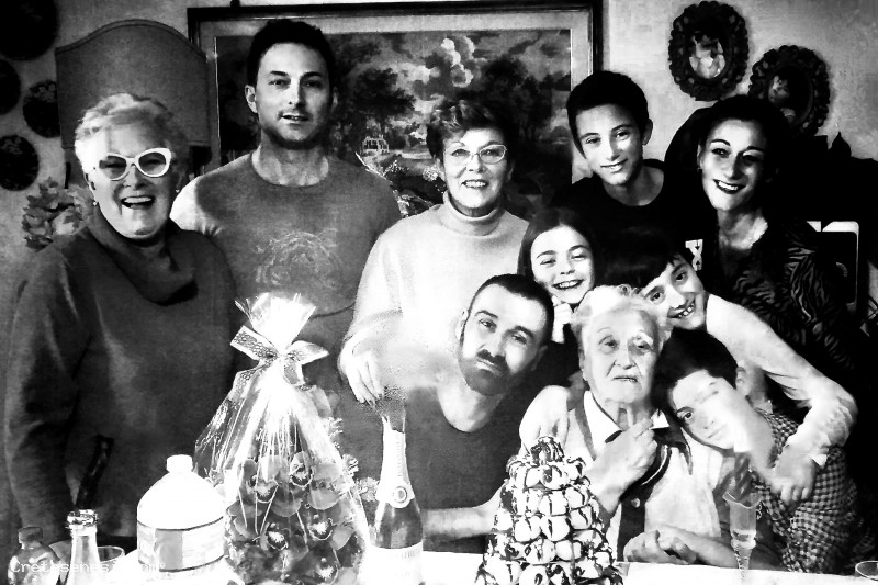 Lida Soldati, moglie di Luigi Landi detto il Golo, attorniata da figlie, nipoti e bisnipoti, il giorno del suo novantatreesimo compleanno.