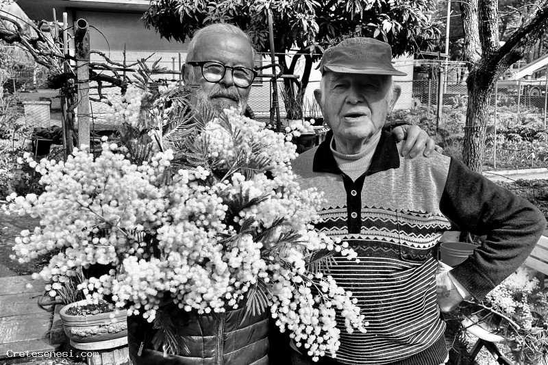 Nella foto, a destra: Marcello Palazzi, il caro amico che mi ha gentilmente donato il fascio di Mimosa.