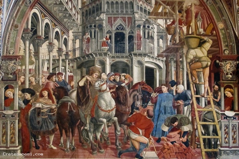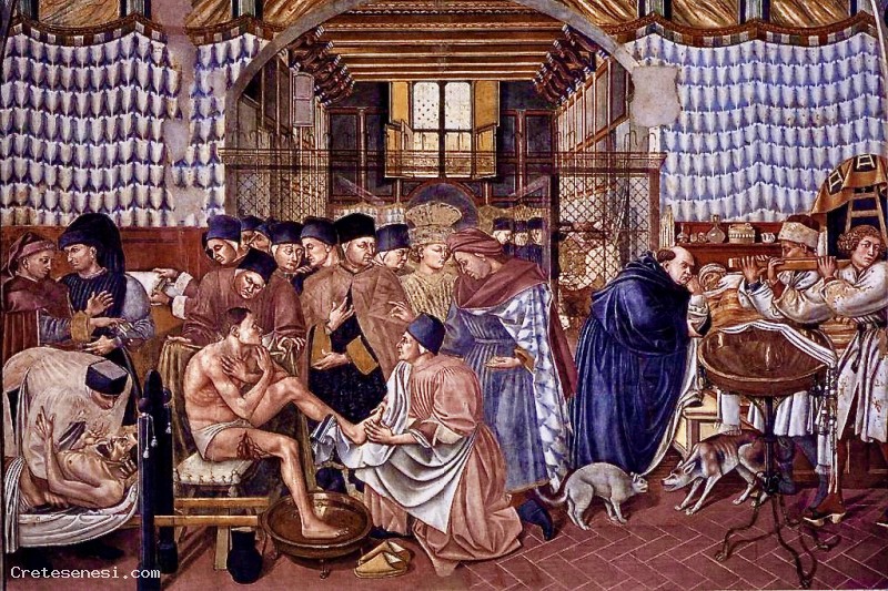 Series of large frescoes, made ​​on commission of the Hospital of Santa Maria della Scala, representing the living pictorial transposition of this great charity for pilgrims on the Via Francigena and the needy citizens of Siena.
