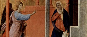 "L'annunciazione" è un dipinto autografo di Duccio di Buoninsegna appartenente alla predella della Maestà del Duomo di Siena, realizzato con tecnica a tempera su tavola nel 1308-11, misura 43 x 44 cm. ed è custodito nella National Gallery di Londra. Il dipinto, spesso citato - e con buona ragione - dalle antiche fonti, venne acquistato nell'Ottocento nella città di Firenze.