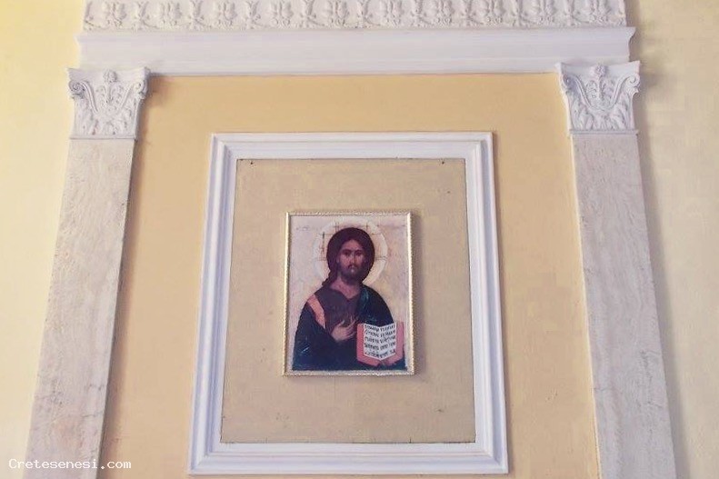 The interior is plastered, while all the fixed furnishings are made again in travertine. Above the entrance is a chorus, supported by two columns plastered with Doric capital.