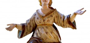 L'angelo fa parte di una coppia di sculture raffiguranti l'Annunciazione ed è databile al...