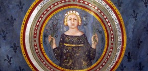L’affresco che mostra la storia del Re Totila che vuole conoscere San Benedetto e manda a ...