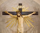 Large wooden crucifix, carved by a talented unknown artist and dating back to 1440, date reported on the original cross.