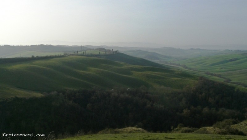 In this area there are two farms along the Via Lauretana Antica which leads from Asciano to Siena. Being on a rise in the middle between “La Pievina” and Vescona, we don’t understand the origin of its name. In fact, being a barren land and on a higher level as regards the surrounding lands, it is not possible here to find veins of water. The place, which doesn’t seem to have important historical origins, is very interesting for the landscapes, because of the variety of foreshortenings over the Crete.