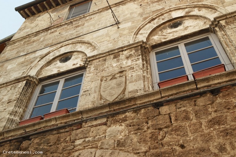 The architecture of the Asciano residence of the Tolomei family is characterized by a travertine façade opened by two very lovely late gothic windows with sharply arched gables. Despite modifications over time, it preserves the typical form of dwellings used for the commercial activities of the owners. It is characterized by a courtyard with a broad entrance way for loading and unloading goods.