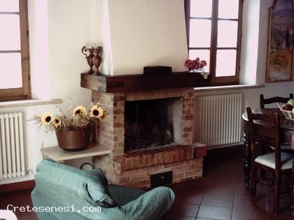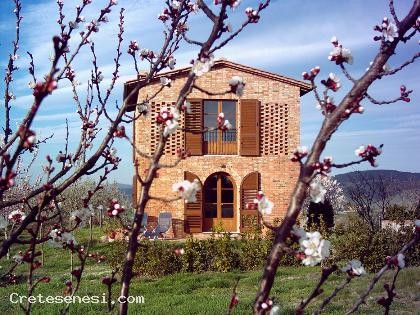 6 km from Asciano, situated on a hill, which dominates the landscape of Crete Senesi, it is in the middle of olive trees and woods, rich in mushrooms and truffles. The farmhouse, carefully restored with due respect of traditions, used fired brick and travertine, it offers a splendid 360° panorama, which gives back the sense of freedom to the spirit. The ancient country-cottage is independent and quiet, it includes a walling kitchen, a living-room with fireplace, TV and travertine bathroom: everything is brand new and comfortable. The farm offers charcuteries and typical cheeses, oil, honey, jams and biological home-made food, besides excellent wines such as “ Brunello” of Montalcino, “ Chianti” and “ Nobile” of Montepulciano.