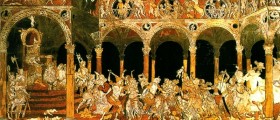 The shock was so great that Pope Sixtus IV called the attention of the city-state on the disaster and noting that none of them was safe, the begged to put aside their political disputes to join in the cause of mutual defense against Muslims. The scene, made from 1481 to 1482, was built by Francis Niccolaio materially and Nanni di Piero di Nanni design by Matteo di Giovanni, and restored in 1790 by Matteo Pini and Charles Amidei.