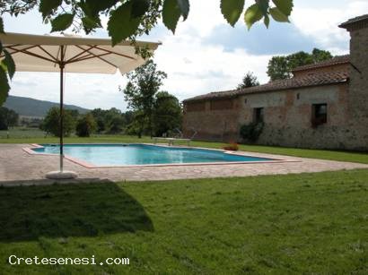 “ Piampetrucci” is situated in the country of Buonconvento, 29 km from Siena. Hospitality in a farmhouse which reflect the ancient tradition of the Tuscan farm. The living building in fired-bricks, with traditional coverings, can give hospitality to groups up to 24 people or 16 couples. Services: swimming pool.