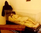 In the next room are placed some relevant liturgical objects, kept in a glass case, the painting of St. Catherine, St. Dominic and the Mysteries of the Rosary painted by Stefano Volpi around 1630 to contain the Madonna and Child by Duccio, a painted wood sculpture of St. Anthony of Padua and the bier of the seventeenth century.