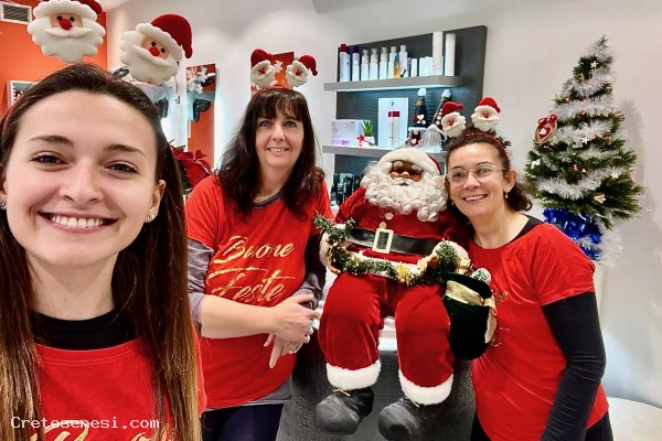 Lo staff di ALICE'S STUDIO, raccolto intorno a un pupazzo di Babbo Natale per fare insieme gli auguri a tutti gli ascianesi e ai loro clienti in particolare.