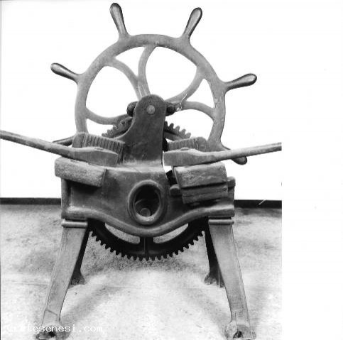Questo particolare strumento serviva alla compressione od allo stiramento distrisce metallliche in modo da adattarle alla misura richiesta. La calandra veniva usata sopratutto per la midellazione dei cerchioni di vario diametro usati nella cistruzione delle botti e dei barili.