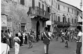 Ancora un'immagine della Tribbiatura in Piazza Garibaldi con in primo piano il contadi...