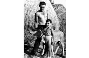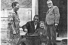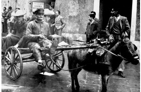 Caratteristica foto che immortala il conferimento della quota di grano, spettante al padro...