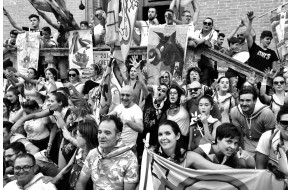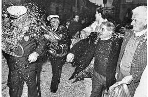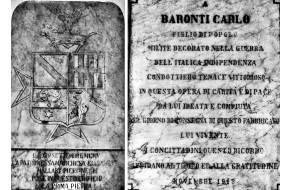 Particolare della Tribbiatura in Piazza Garibaldi, che evidenzia il motto scritto sul retr...