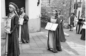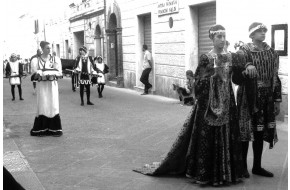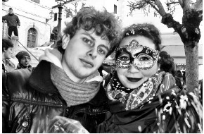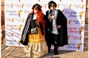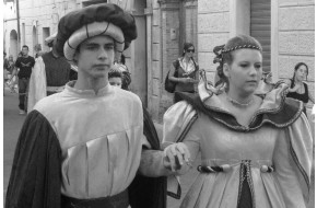 Una coppia di maschere posa per il concorso della Proloco con perfetti costumi di epoca se...
