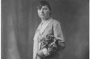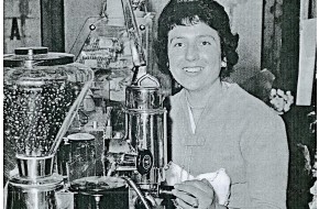 Angiola Fregoli, mamma dei fratelli Laschi, lavora da sarta ultilizzando una macchina da c...