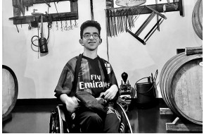 Bella foto di Alessio De Cicco all'interno di un locale che sembra una cantina. Si ...
