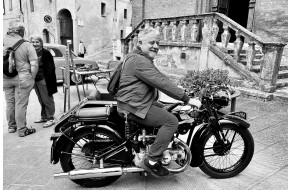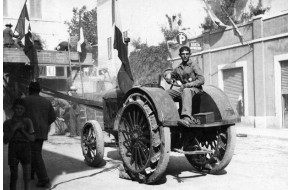 Bella foto di Renato Barbi sul trattore utilizzato, in piazza Garibaldi, per effettuare la...