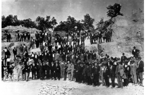 Foto di gruppo fatta per immortalare l'apertura di una nuova cava. A quel tempo, evide...