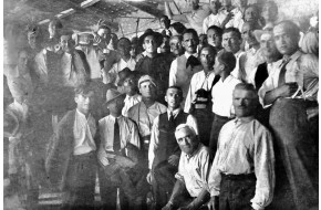 1924 - Gruppo di cavatori insieme sotto una parata per foto ricordo
