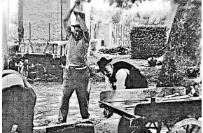1939 - Spaccatura dei blocchi meno pregiati dentro la cava