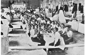 1939 - Lavorazione di travertino sotto un capannone