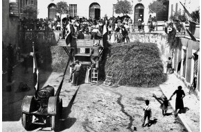 1940 - La tribbiatura in Piazza : il trattore in primo piano