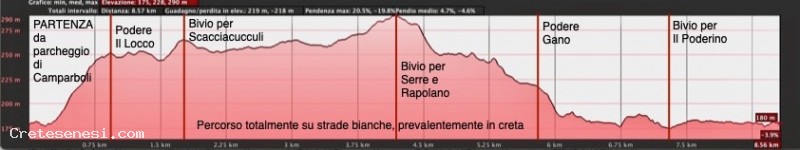 This second part of the route with the bottom still in clay is easy only if dry, difficult and slippery in humid periods or following recent rains. However along the entire return journey, not a moment passes in which splendid landscapes typical of the Crete Senesi can be immortalized photographically.