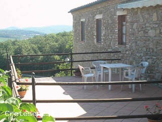 5 hectares’ farm situated on a hill; typical farmhouse of the seventeenth century. Hospitality in one apartment of 4 rooms for 2 people; 2 apartments of 3 rooms for 2 people. Services: weekly change of bed and bath household linens and kitchen cloths, TV/satellite and telephone in each apartment, swimming pool, bicycles’ hire, trekking, walks and naturalistic observation, selling and tasting of farm’s products. In the nearness: horsemanship, tennis, mountain bike’ s trips, fishing, hunting, spa facilities. Products: wine, oil, fruit, vegetables, honey, truffles, mushrooms, Pecorino cheese and Val di Chiana’s meat.