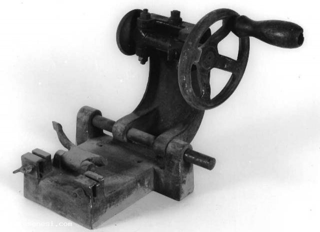 Apparato per la midellazione del profilo di una chiave grezza. Si usava per sbozzare una nuova chiave dopo averla ammorzata insieme a quella originale della quale serviva una copia.