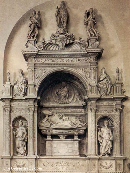 Ma l'aspetto innovativo che caratterizza quest'opera fu la posizione del defunto sopra il sarcofago: lo ritrasse sollevato ed appoggiato sul gomito, ripudiando la piatta visione gotica che celebra un morto, a favore di una nuova concezione che esalta la persona vivente ed attiva.