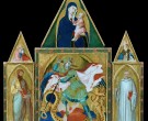 The triptych depicts St. Michael the Archangel slaying the dragon and the Saints Bartholomew and Benedict. The work comes from the nearby Badia a Rofeno and was created by the renowned author of the frescoes of the Sienese painter Governance in the Public Palace of Siena, perhaps at different times.