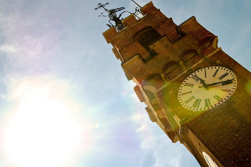 The municipal tower is located ideally in the center of the new part of the town that was extensively developed during the Renaissance. It is known the tower was completed in 1586 thanks to a stone inscription still visible at its base. At the same time there was built a new fountain able to supply water to the residents of the new dwellings that grew up along the present-day Corso Matteotti.
